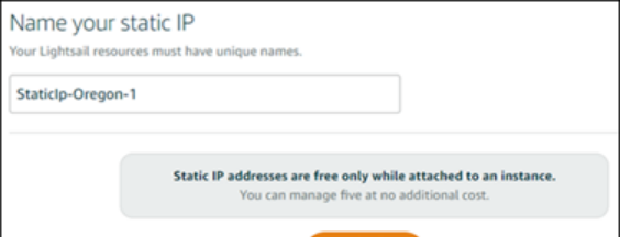 c.静态 IP 位置和附加的实例根据您之前在本教程中选择的实例预先选择。