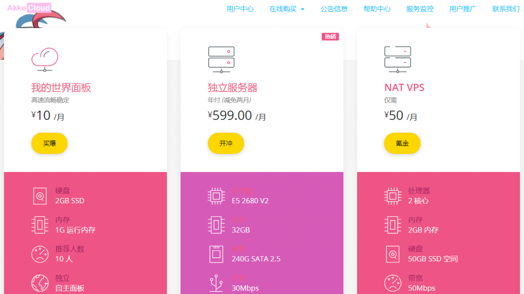 AkkoCloud是一家国人主机商家,2019年8月初开始运营,商家主要销售VPS和独立服务器,还有我的世界服务器业务,机房有国内镇江和美国洛杉矶安畅机房,美国为CN2 GIA线路,目前商家保证可以看Netflix、Hulu、HBO。此家网站浓浓的二次元风,普通人打开后可能会觉得辣眼睛。美西、德国CN2 GIA VPS速度很给力,价格也实惠。虽然风格卖萌,但这家不接受退款。
