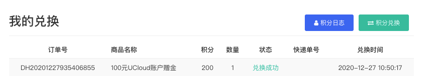 再加上目前 UCloud 的活动,最低 62 购买一年,所以我只能等 200 积分的时候兑换,每天积分获得上限是 20,所以 200 积分 坚持 10 天就可以搞定,算不算免费兑换服务器呢?